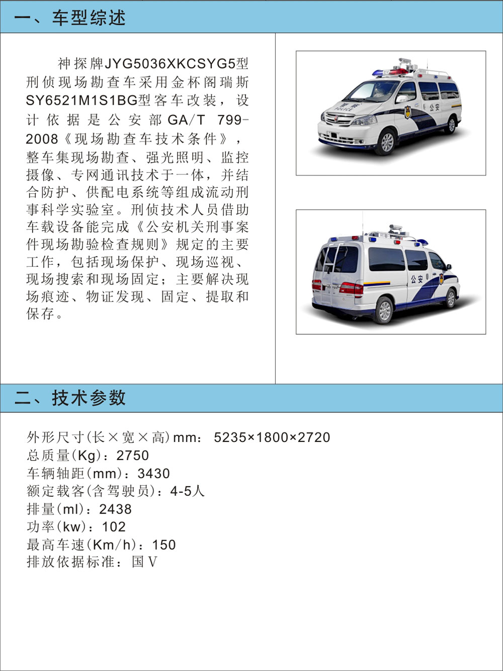 JYG5036XKCSYG5型刑偵現場勘查車