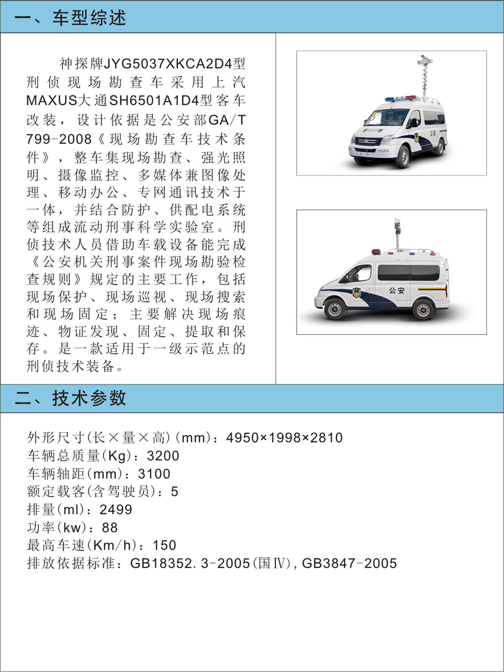 推薦標(biāo)準(zhǔn)為GA/T799-2008 《現(xiàn)場勘查車技術(shù)條件》